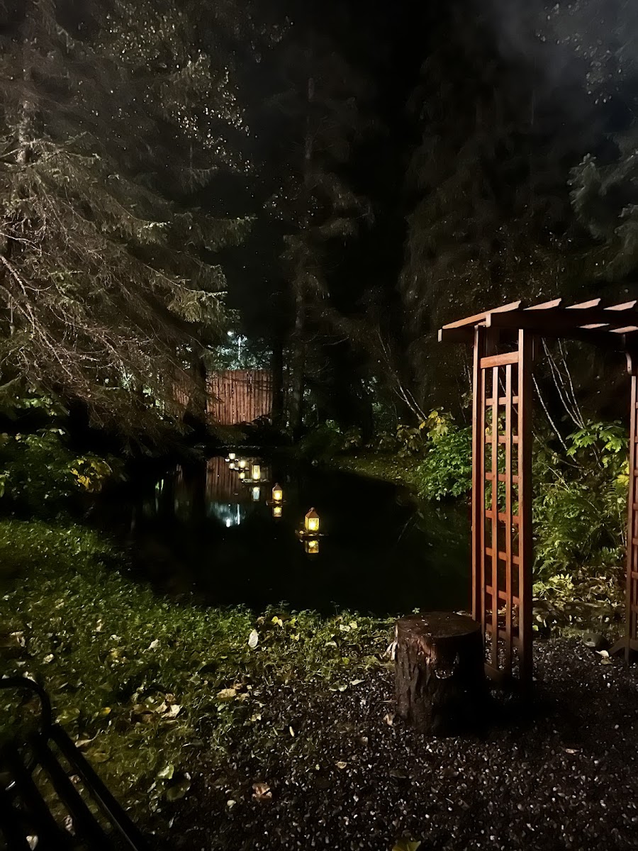 I have spent many wonderful nights at Raven Glacier Lodge! The food is always outstanding and Cathy goes above and beyond to make the evening magical! The lodge is rustic and beautiful, the beds are super comfy, and the grounds are perfect - a nice blend of manicured lawns, gorgeous flower beds, moss gardens and intimate walking paths beyond the pond. There is a large covered deck that's big enough for several tables and still has room to boogie the night away. Cathy and her crew will give you an experience to remember for years to come!